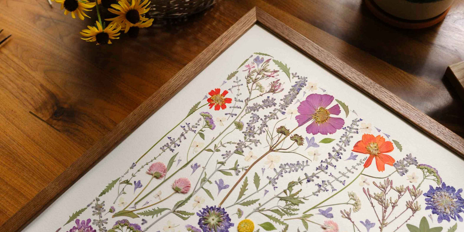 Once Iβve pressed your flowers, Iβll create 2β3 unique design options for you to choose from. Weβll work together to finalize the size and composition, with two rounds of revisions included.