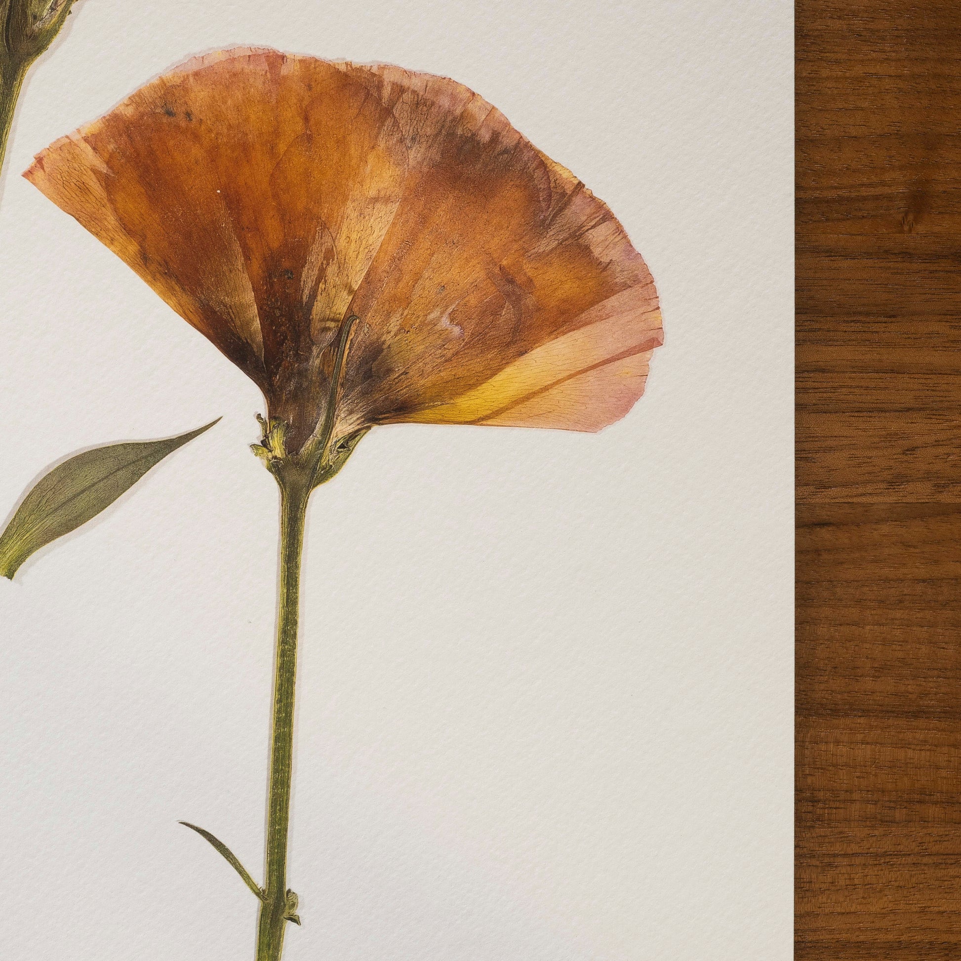 Blush & Bloom captures gradients of coral, rose, and gold giving way to the texture and tenderness of these pressed Lisianthus. This piece invites warmth, softness, and a sense of inspiration into any space.