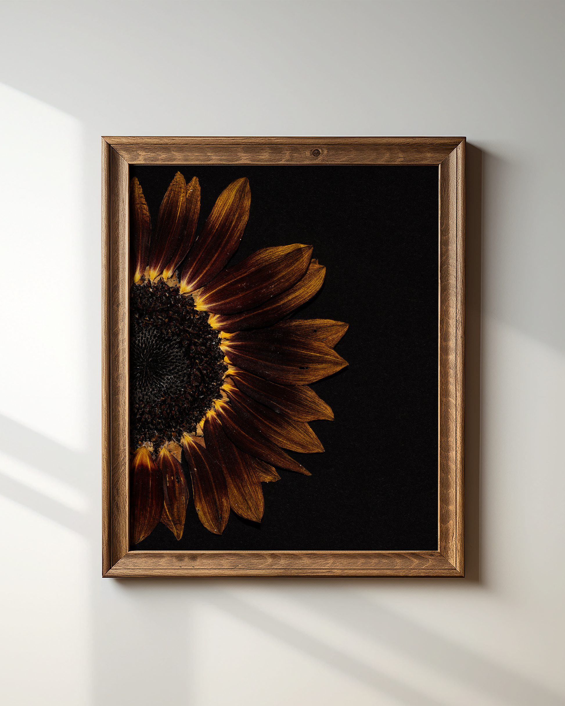 Emberlight captures the beauty of a Kansas sunflower. A Chocolate Cherry Sunflower pressed and printed with rich, velvety contrast, Emberlight is inspiring & grounding.