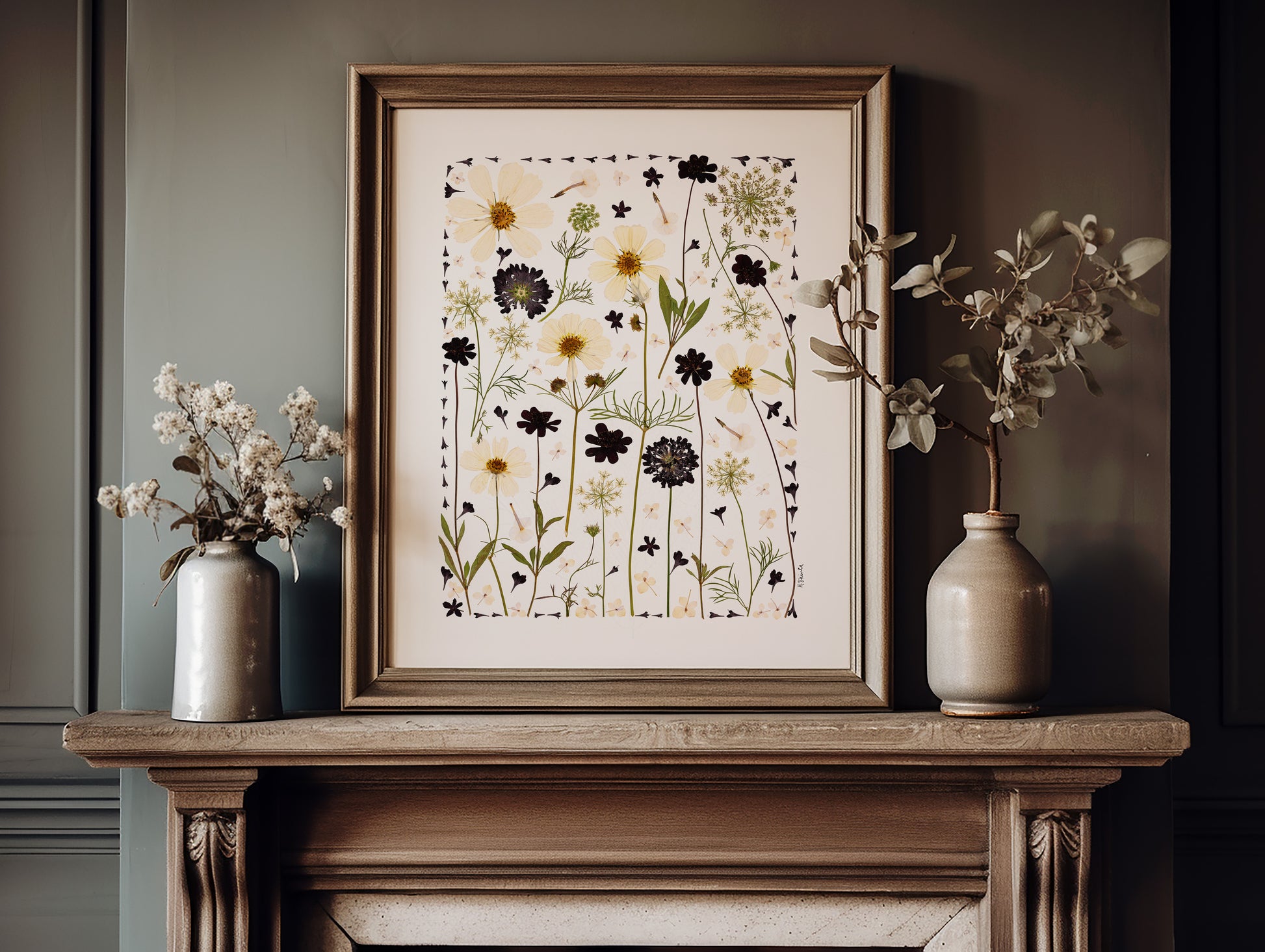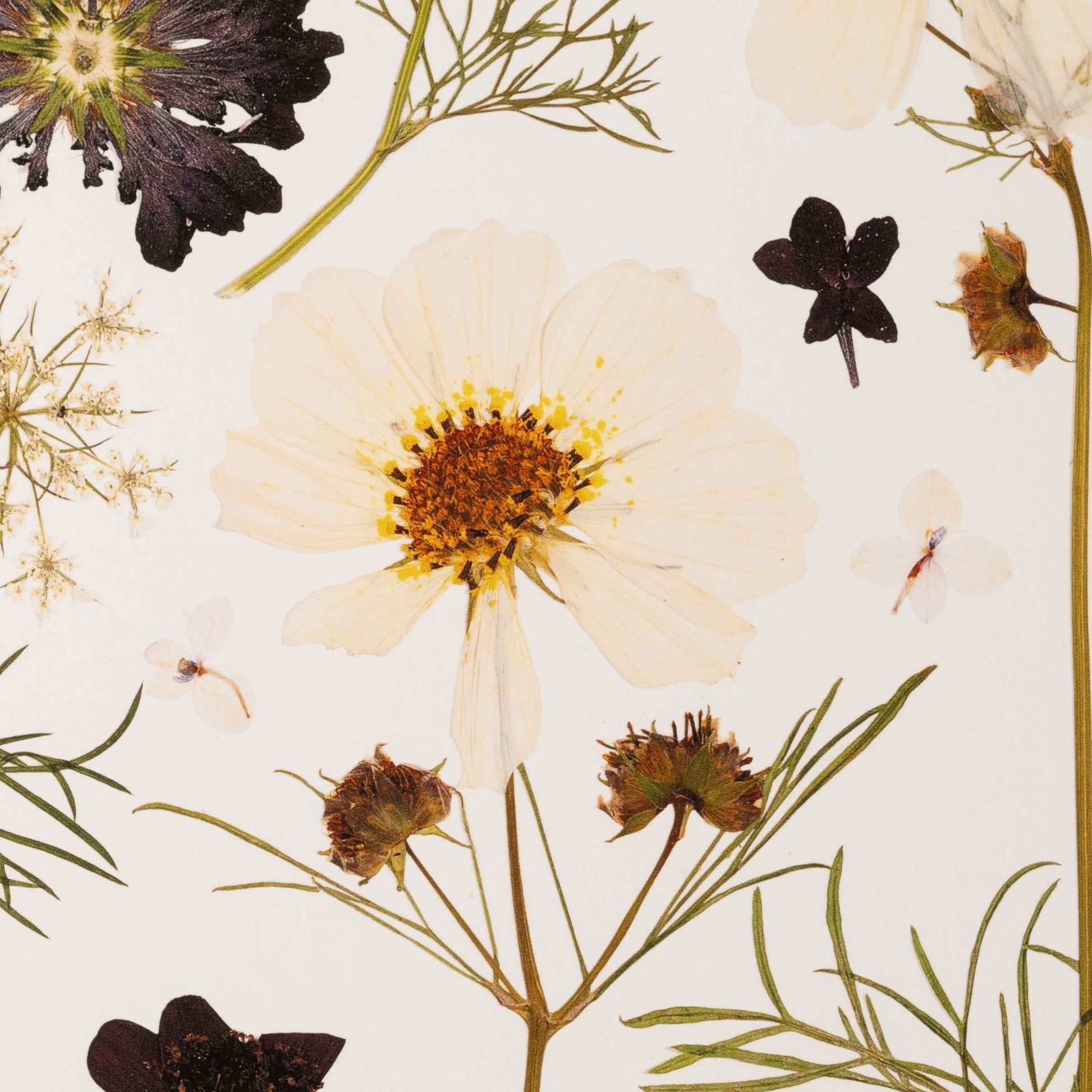 Midnight Meadow is where ivory blooms and inky black petals coexist in perfect balance. Pressed from real wildflowers, this composition captures the calm of a summer night: grounding and awe-inspiring.