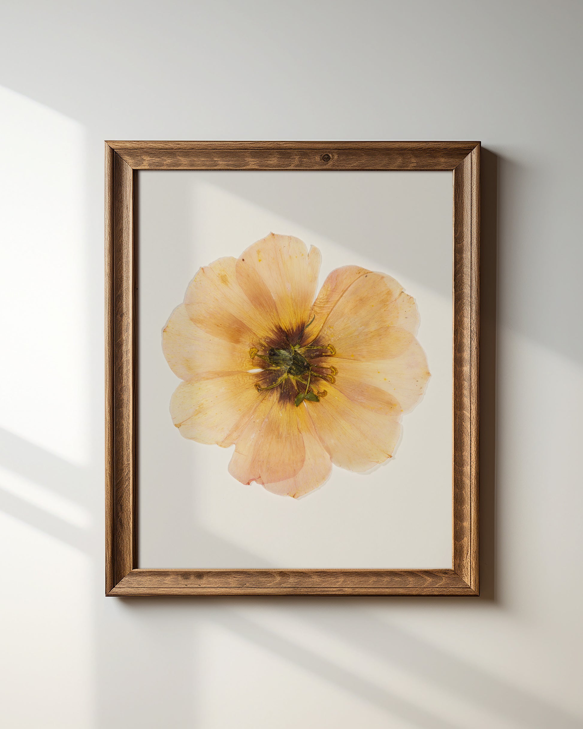 Slow Bloom features a single pressed lisianthus, it invites you to embrace the in-between, to honor where we are, not just where we’re going. With its warm, earthy tones, this piece brings a sense of joy & grounding to any room.