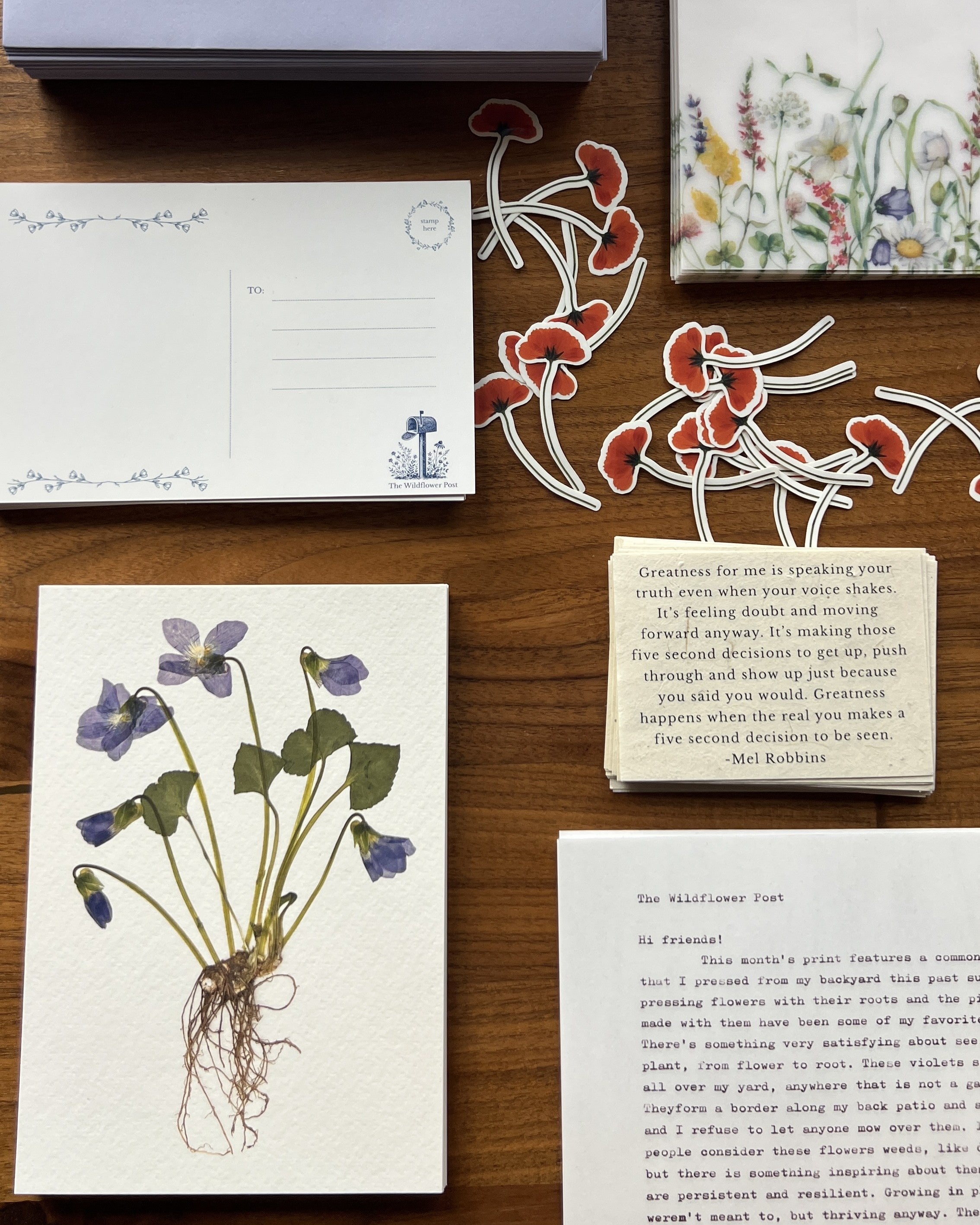 Flowers, positive words, and journaling have been a huge part of my journey. My hope is that when you get The Wildflower Post envelope every month, you set aside time just for yourself and have an experience that leaves you feeling seen & inspired.