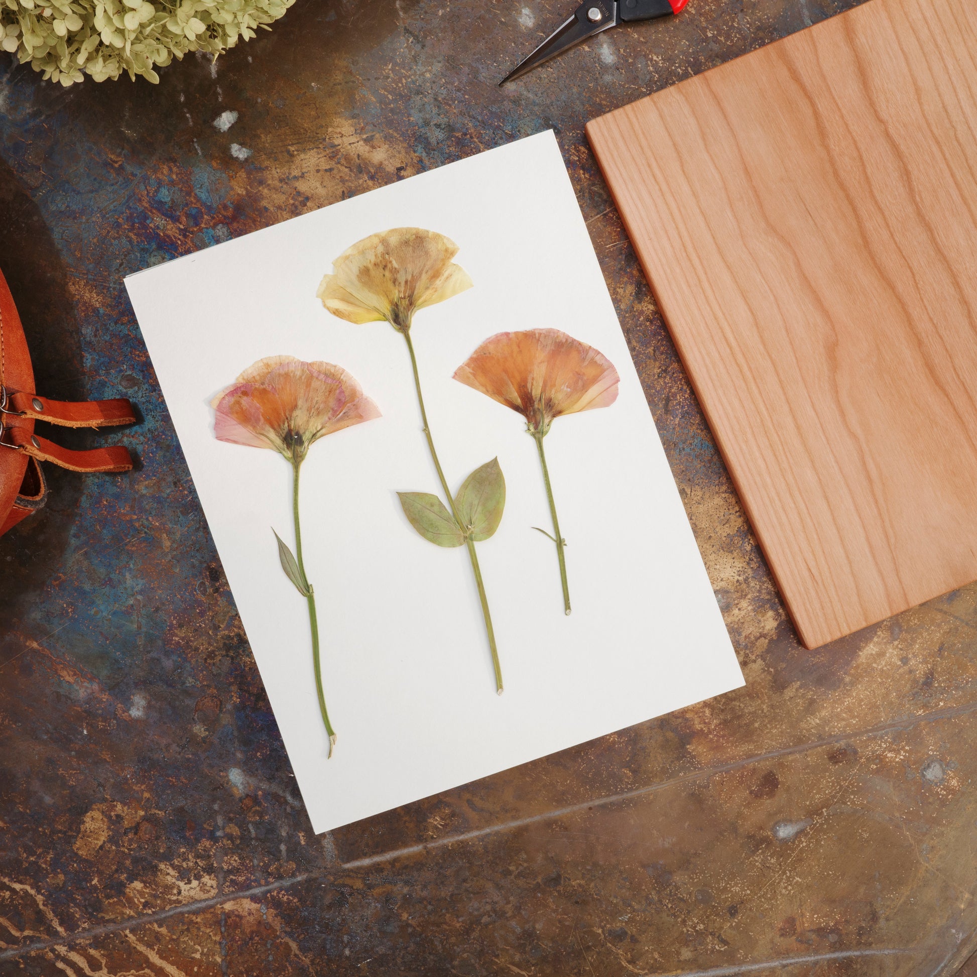 Handcrafted from rich Cherry or Walnut wood, the Wildwood press is ready for your next adventure. Portable enough to slip in a suitcase or backpack, yet generously sized to press tons blooms at once.